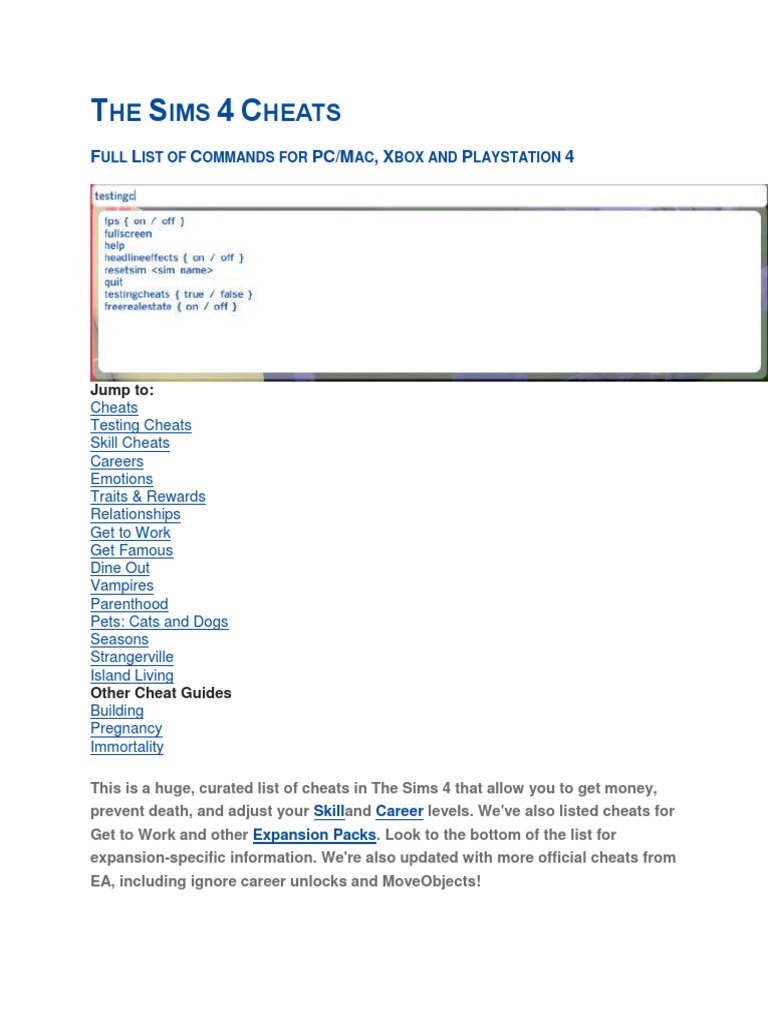 Sims 4 Cheats All Cheat Codes For Ps4 Xbox One Pc Mac In 2022 Sims 4 Sims 4 Cheats Sims